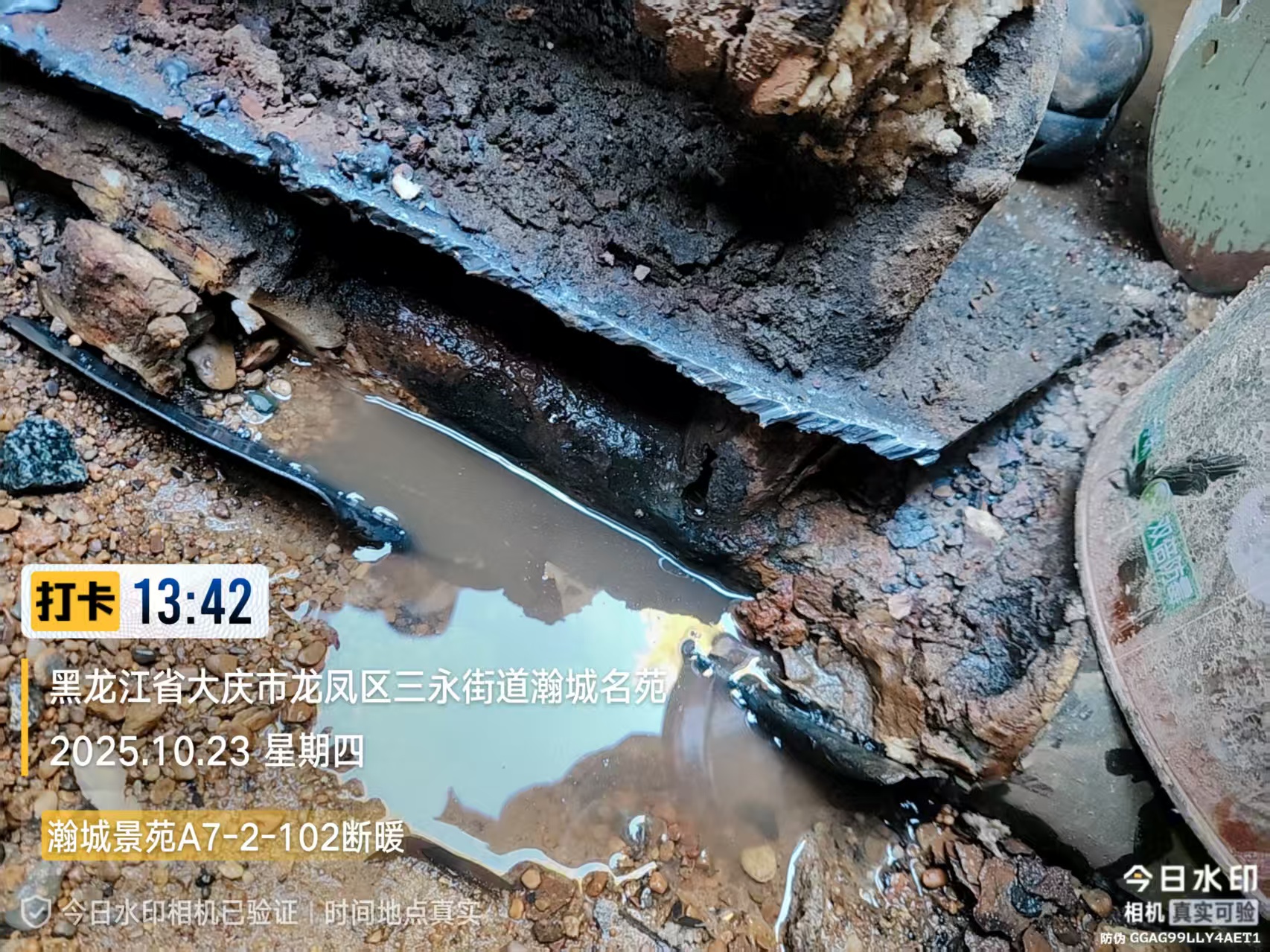 由于二级网管道埋深较深、地下管线分布复杂,漏点定位难度远超预期。排查小组白天借助专业听漏仪沿管线逐段检测,夜间在居民休息后利用管网压力变化规律缩小排查范围,连续3-4天从晨光熹微忙至夜色深沉,反复核对管线图纸、调整检测参数,最终在10月22日精准锁定两处漏点:分别位于瀚城名苑E10-2门楼头与E10-3门附近。