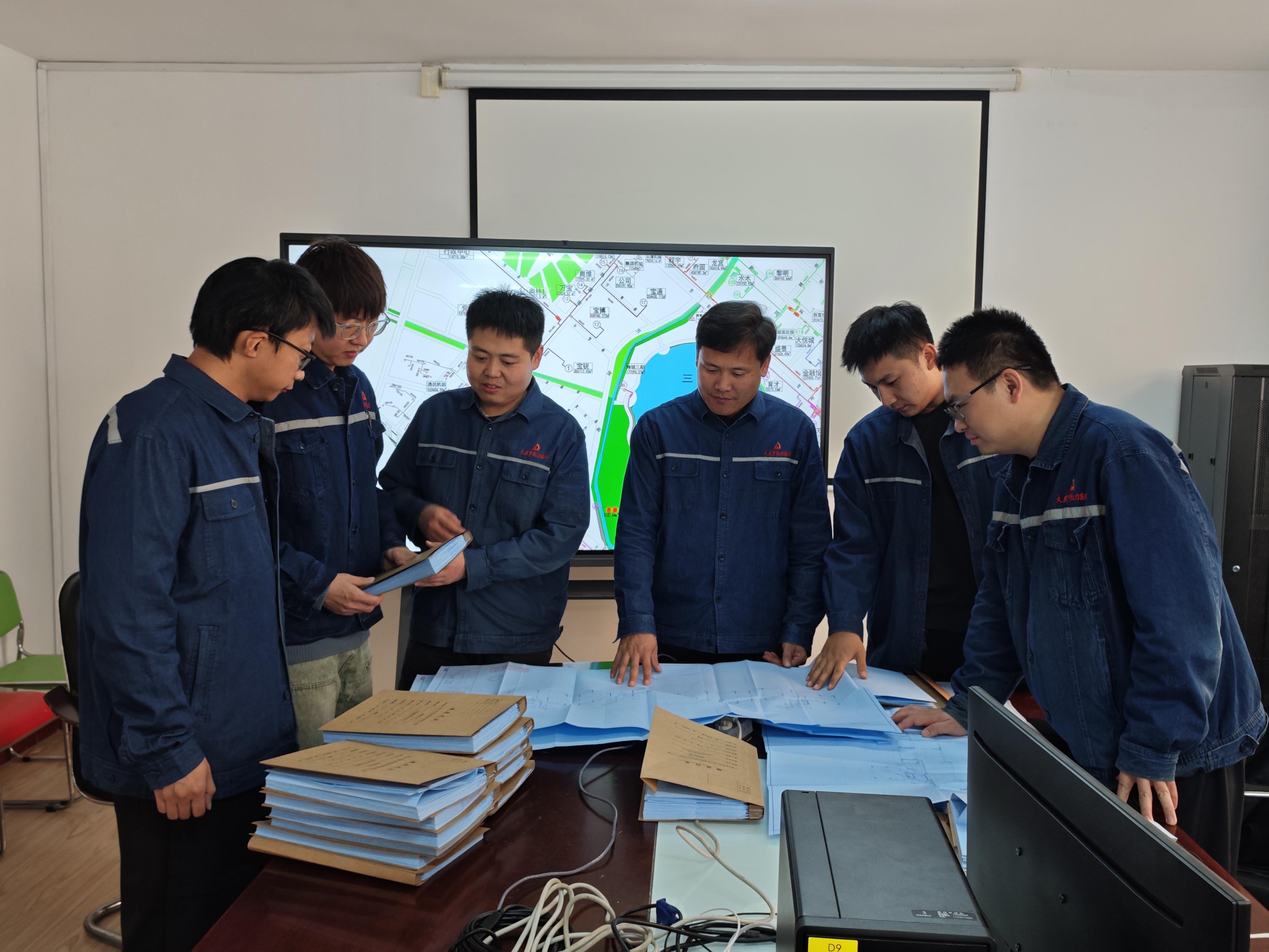 为了让项目精准对接民生需求,团队成员放弃休息时间,深入东城区重点区域实地勘察。副主任李照明、建设管理工程师张晋铭带着图纸奔走于社区街巷,逐户了解未分户居民的供暖痛点;暖通工程师李越、孙雷埋首档案室,翻阅近十年的管网历史资料,为管线改造方案提供数据支撑;集团顾问张玉新与运行管理工程师曹立泽则守在办公桌前,对每一张设计图纸进行反复审核,小到一个阀门的位置、一段管线的材质,都力求精准无误。