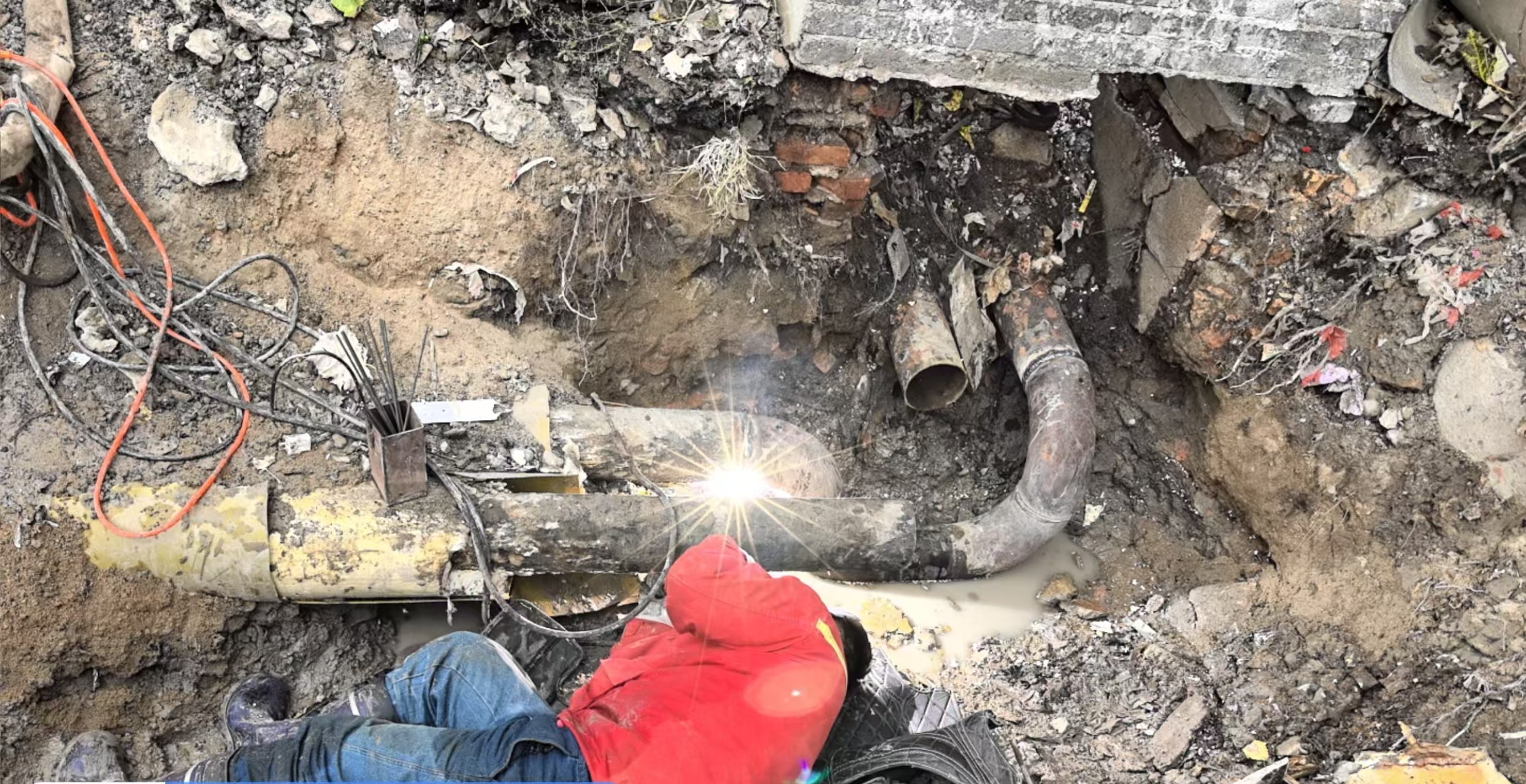 当漏点管道显露后,拥有多年焊接经验的陈凤国立即上阵。他先仔细检查管道破损情况,用砂纸打磨管道接口、清理杂质,确保焊接面平整干净;面对管道压力不稳的问题,他精准调节焊机电流与电压,手持焊枪稳稳对准漏点,在高温火花中完成密封焊接。过程中,杜春英主任始终坚守现场协调指挥,一边关注抢修进度,及时补充工具与物资,一边与小区物业沟通,告知居民抢修情况,安抚大家情绪。