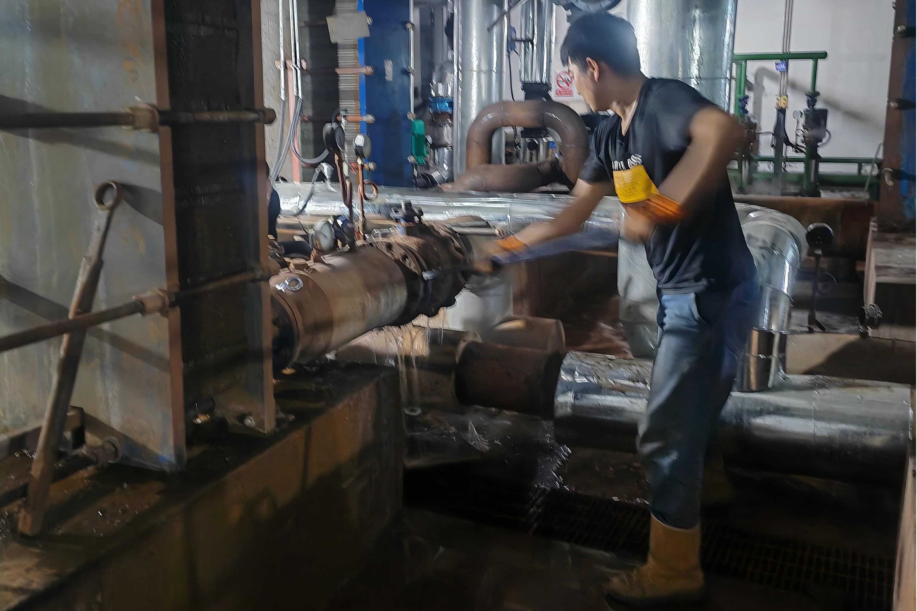 抢修工作一上手便充满挑战。淤堵的阀门早已被铁锈牢牢 “粘” 住,维修人员需用管钳一点点卡住阀门,再使出全身力气转动,每拧动一圈,都要停下来清理阀门上掉落的铁锈;拆解换热器时,更是要小心翼翼,避免零件掉落损坏。换热器内部的污垢厚得惊人,清水冲上去瞬间变成浑浊的褐色,大家只能用刷子一遍遍反复刷洗,指尖被冷水泡得发白,却没人喊一声累。工具碰撞的 “叮当” 声、水流的 “哗哗” 声,在寂静的夜里格外清晰,那是属于供热人的 “深夜交响曲”。